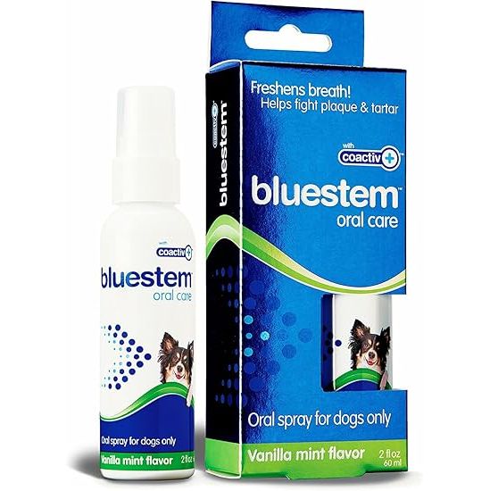 Bluestem Dog Oral Care – Vanilla Mint Spray is specially formulated to help fight plaque and tartar build-up, freshen breath, and improve oral hygiene. This dental spray is perfect for dogs of all breeds and sizes, featuring a refreshing vanilla mint flavor and a no-startle nozzle for smooth application. Key.