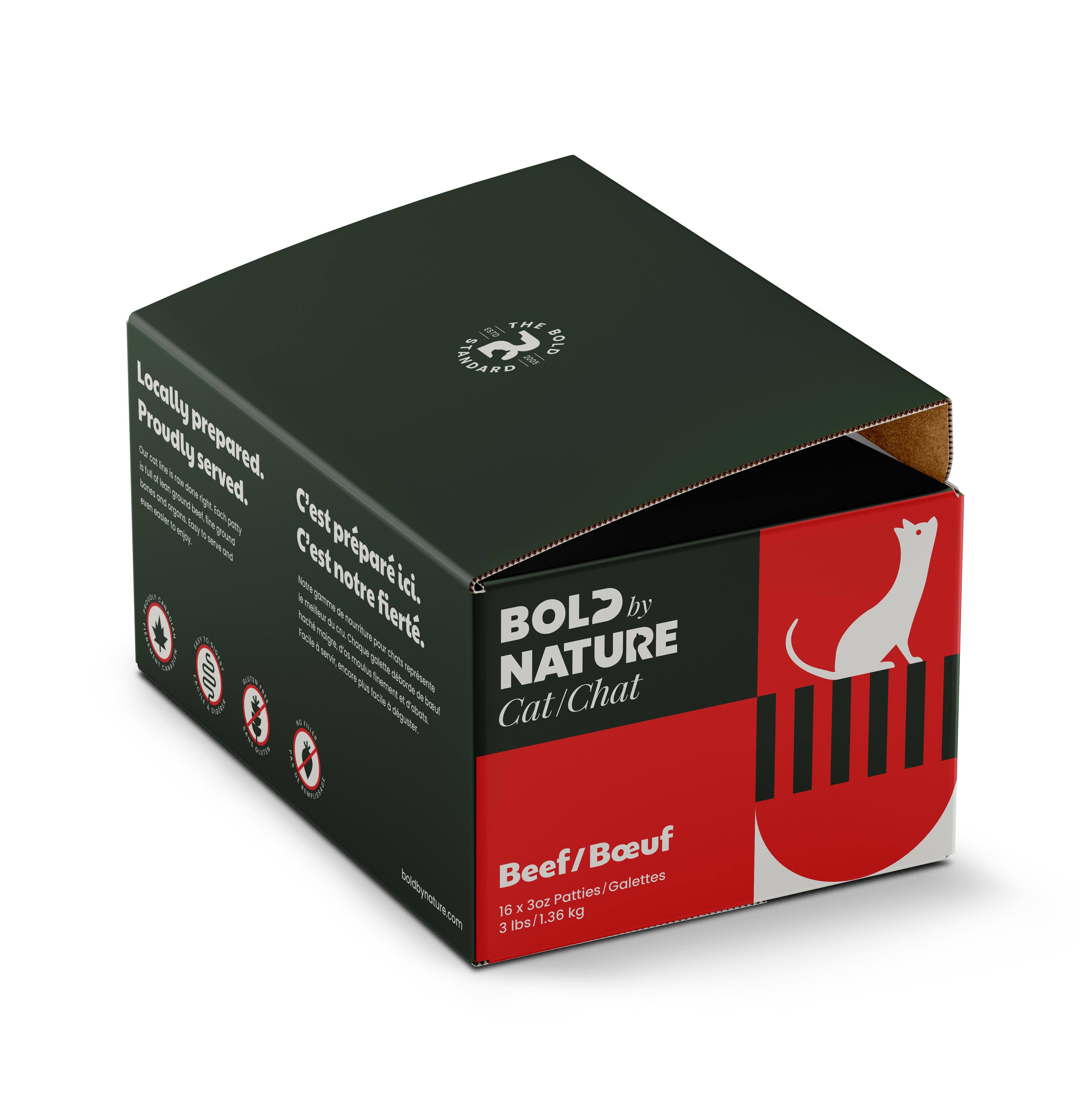 Patties are raw done right. Every beef patty is packed with farm-fresh lean ground beef meat, triple-ground bone, and organ meat. Proudly Canadian, Bold by Nature Beef is easy to digest, gluten-free, and made with no fillers. Nutrient rich. Bold flavour.