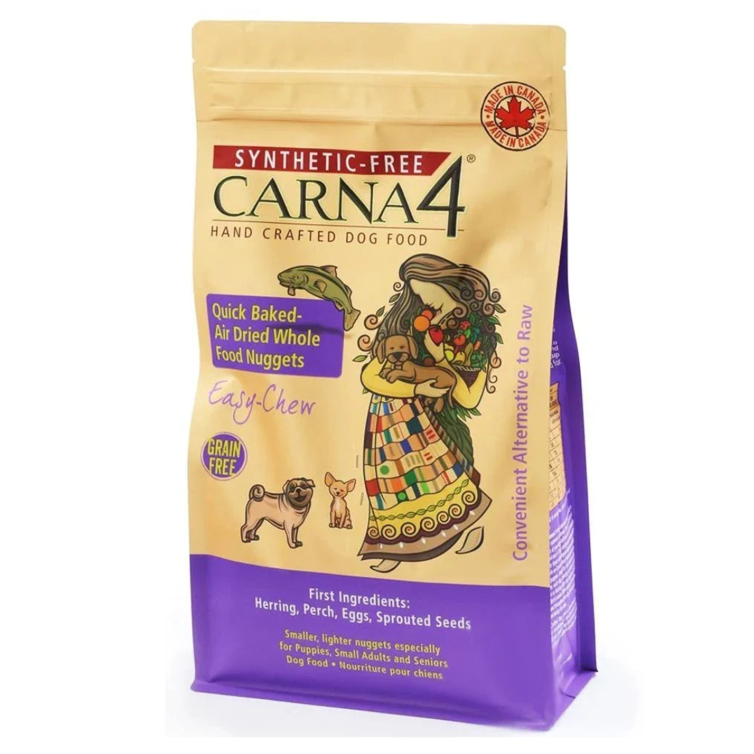 Herring, Perch, Eggs, Ground Organic Sprouted Barley Seed, Salmon, Ground Fava Beans, Sweet Potato, Ground Organic Sprouted Flaxseed, Ground Organic Sprouted Lentils, Ground Organic Sprouted Peas, Potato Starch, Apples, Carrots, Salt, Kelp, Baking Soda.