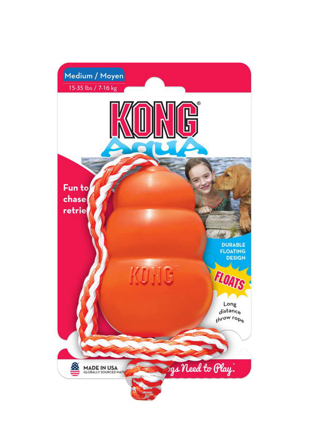 The KONG Aqua, formerly the Cool KONG, is a toy that helps to recover floating fun and exercise both on and off the water. The KONG Aqua has a foam core keeps it afloat while the dog is nothing to search for and collect.