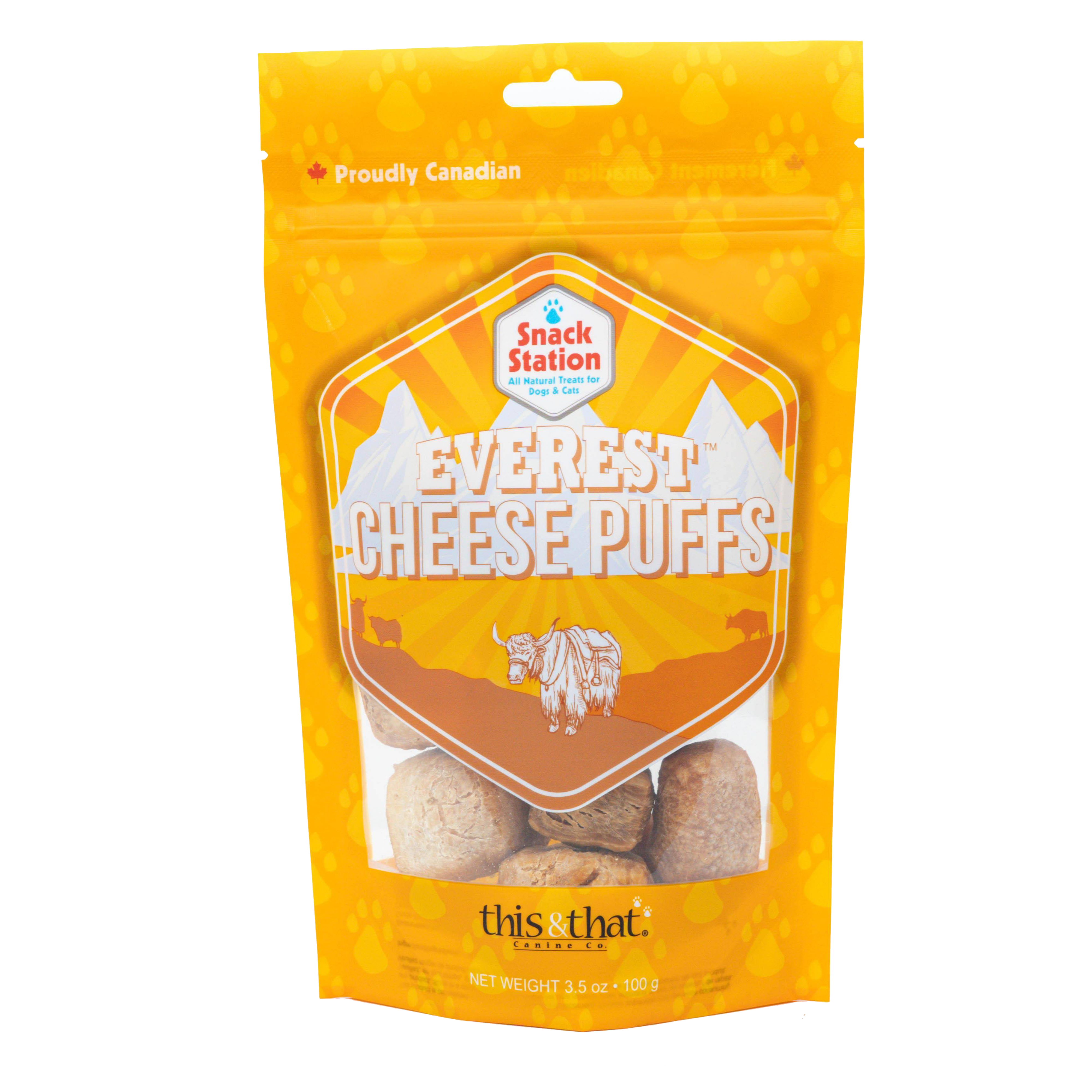 Dive into the nutritious world of This&That Canine Everest Cheese Puffs. Rich in protein with only 17 kcal/treat. Get yours today!